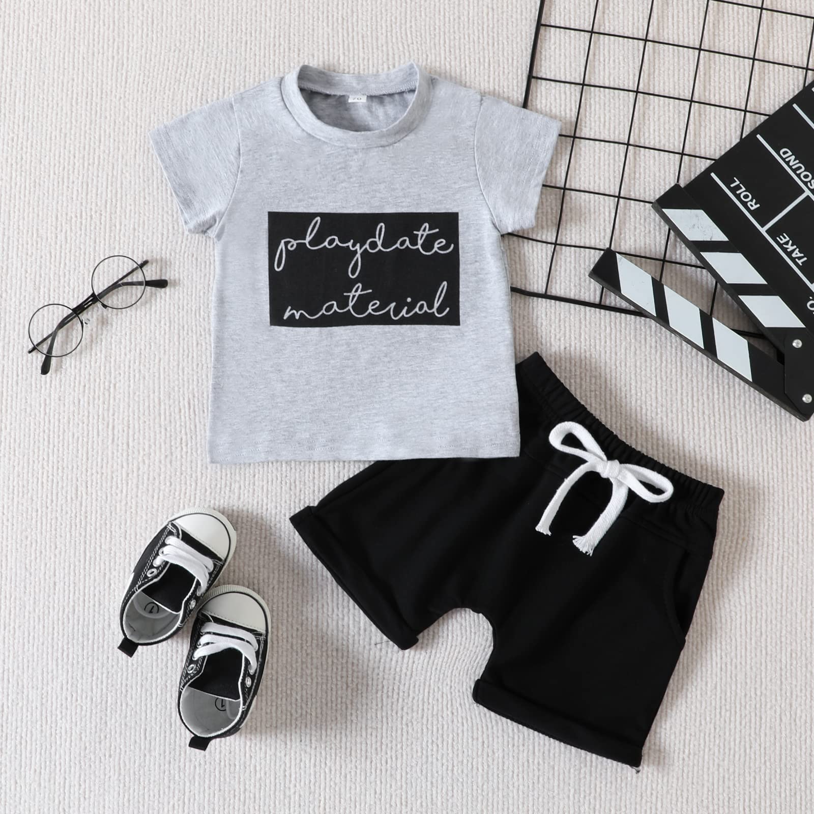 - Delicate Design---With letter printed short sleeve t-shirt your baby girl will be more cool in summer,solid shorts make baby boy be more neat,baby boy shorts set perfect gift for infant baby boy.